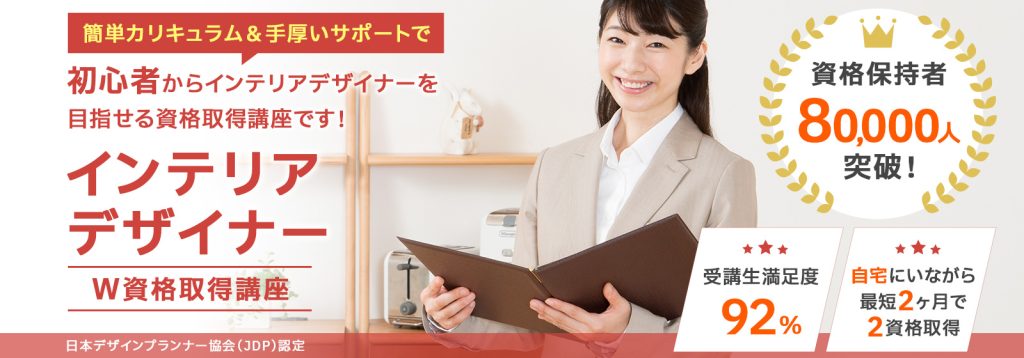 「インテリアデザイナー資格」は、インテリアに関する商品知識や販売技術、表現力を身につけることができるため、未経験からインテリアデザイナーを目指す方に最適な資格です。