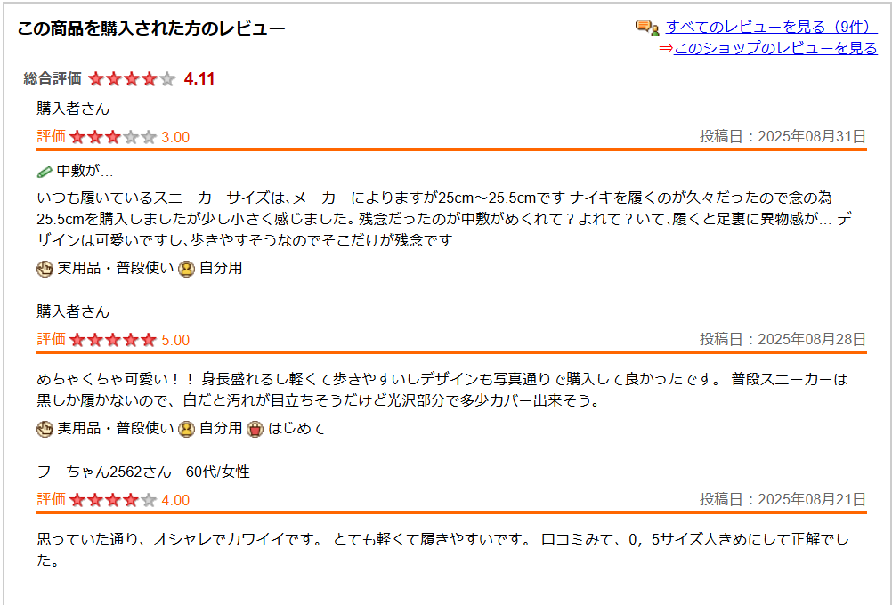 これらの口コミから、足の形によってサイズ感の感じ方が違うことがわかります。特に足幅や甲の高さに自信がない方は、ハーフサイズアップを検討してみると良いでしょう。